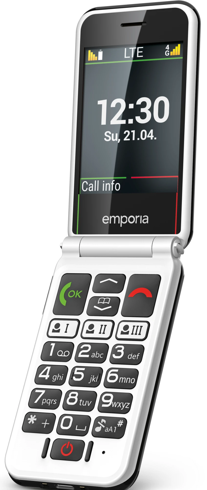 Weiß, schlicht und hochwertig – so sieht das dieses einfache Seniorenhandy von außen aus. Aufgeklappt, spielt es dann all seine weiteren Vorzüge aus. So profitieren Sie bei diesem einfachen Handy für Senioren von Funktionen wie Wecker, Vibrationsalarm, Kalender, Taschenrechner oder LED-Statusleuchten für Akkuleistung, Anrufe oder SMS. Das Gerät begeistert dabei besonders Tastenliebhaber, denn wir haben es mit extragroßen Tasten ausgestattet, die noch dazu beleuchtet und erhaben sind und einen ausgezeichneten Druckpunkt aufweisen. Ebenso gibt es Schnellwahltasten. Weitere Highlights: eine individuell verstellbare Schriftgröße und ein breiter Bildschirm mit gut lesbarer Schrift. Auf der Rückseite finden Sie zudem unseren patentierten Notruf-Button. Im Ernstfall rasch und unkompliziert Hilfe holen – das ist damit immer möglich.