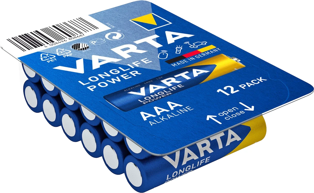 Unbenutzte und verpackte VARTA Micro-Alkaline-Batterien bleiben bis zu 10 Jahre lang im frischen, geladenen Zustand.